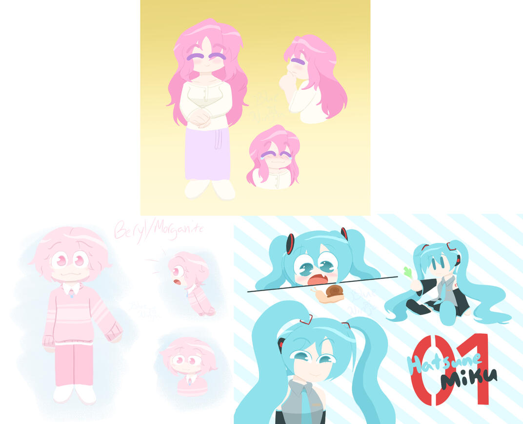 A doodle page consisting of one full body drawing, one half body drawing, and one headshot drawing!